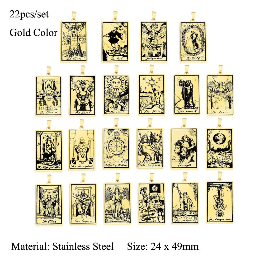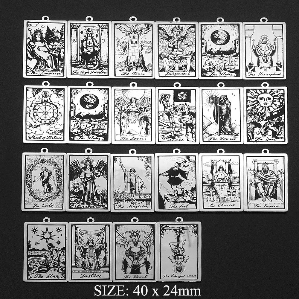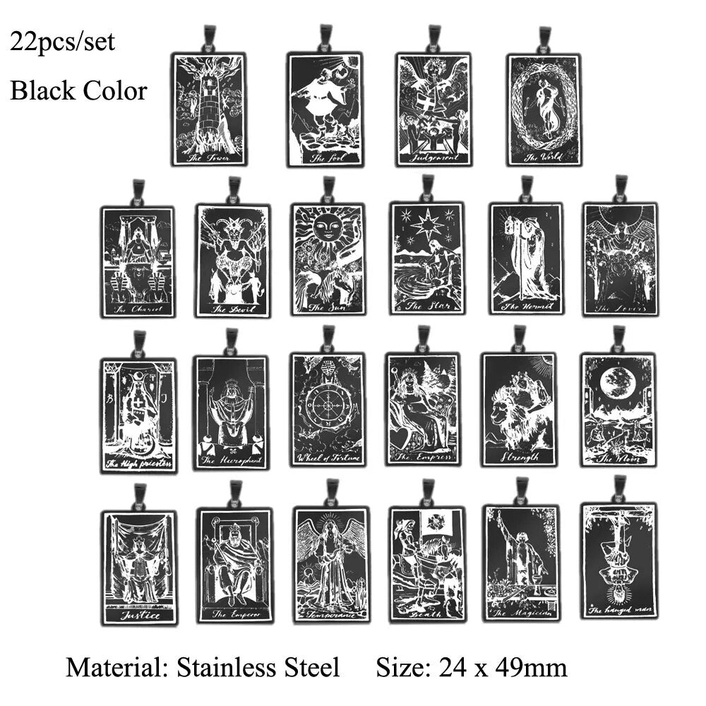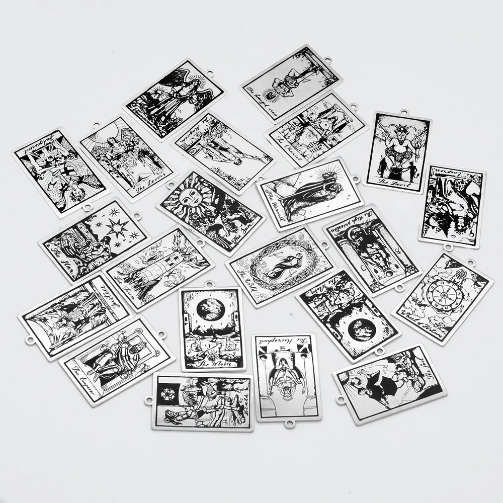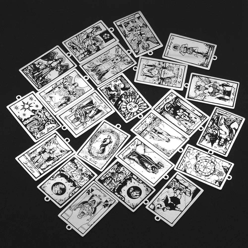 Ensemble de 22 Charmes de Pendentifs Tarot en Acier Inoxydable pour Création de Bijoux
