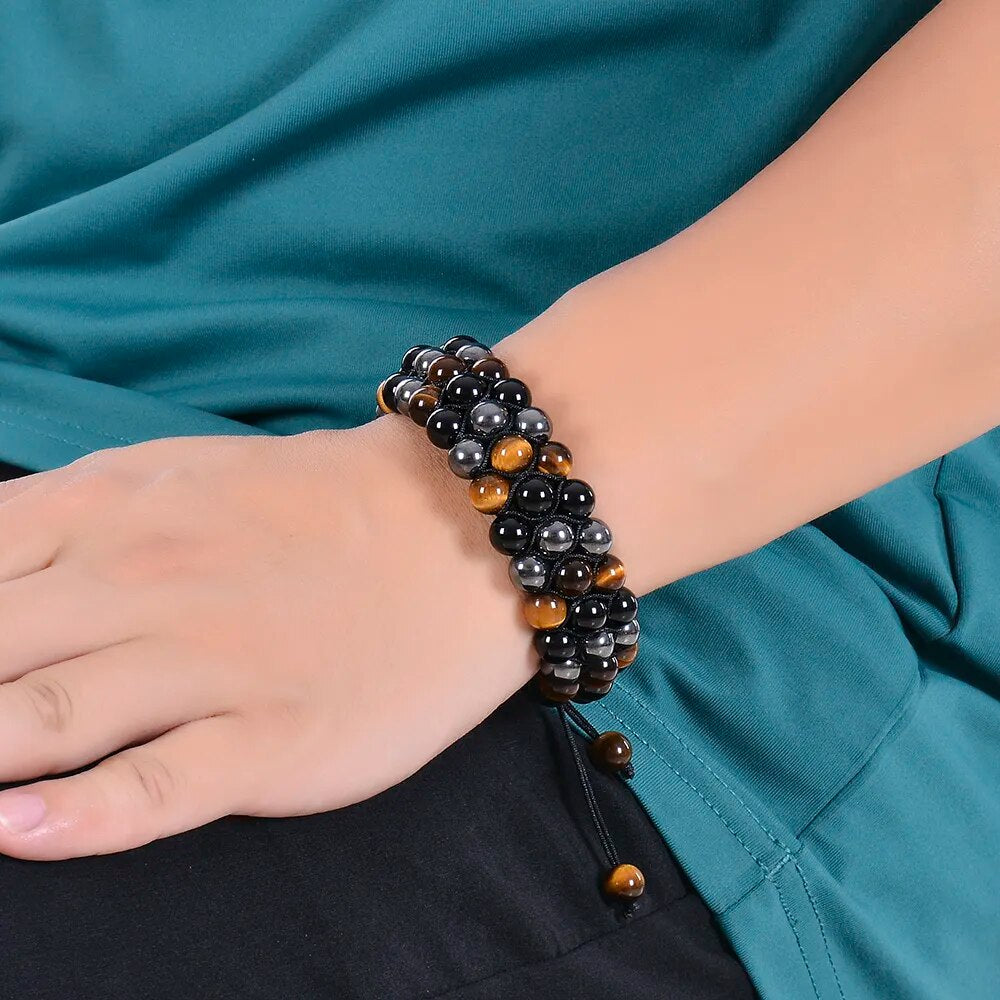Bracelet en Pierre Œil de Tigre 8mm - Énergie Naturelle, Perles d'Hématite et Onyx Noir, Bracelet Ajustable pour Couples