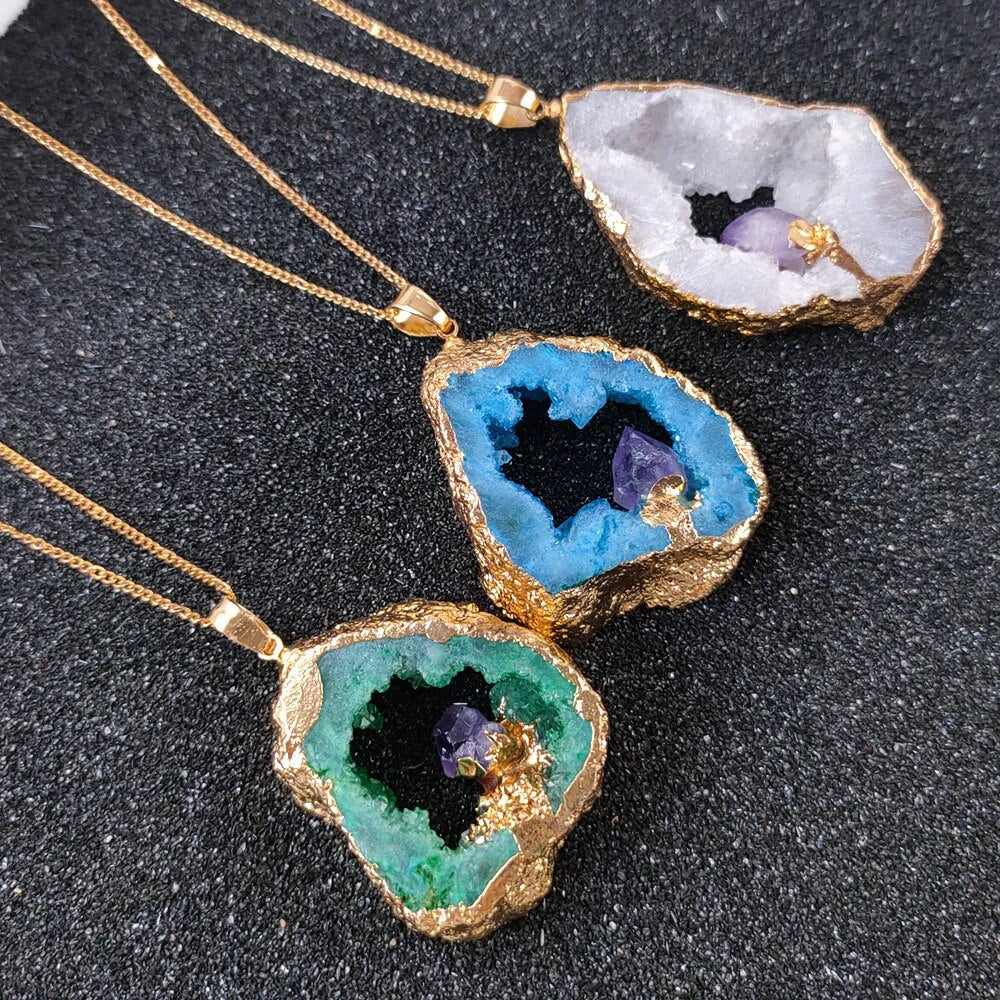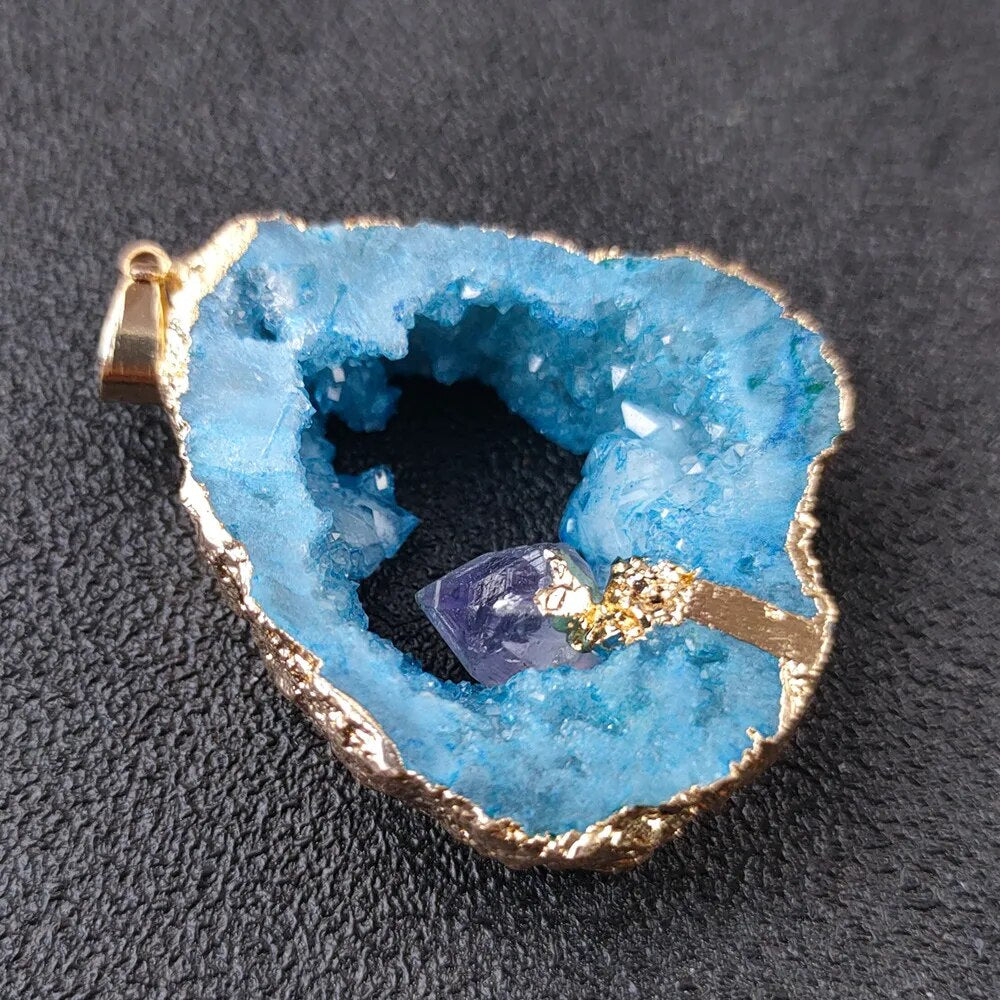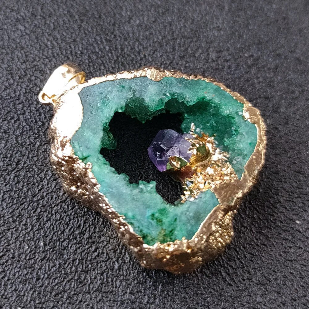 Portez ce pendentif avec fierté, sachant qu'il incarne la tendance tout en préservant la connexion profonde avec la nature et ses merveilles cristallines. C'est un bijou qui transcende le temps et la mode, capturant l'éclat éternel des cristaux dans un écrin élégant.