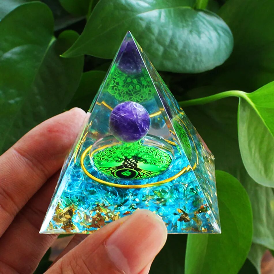 Nouvelle Pyramide Orgone en Améthyste et Péridot - Pierre de Guérison Énergétique, Outil de Méditation, Décoration Intérieure en Quartz